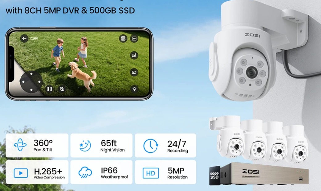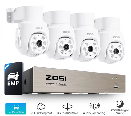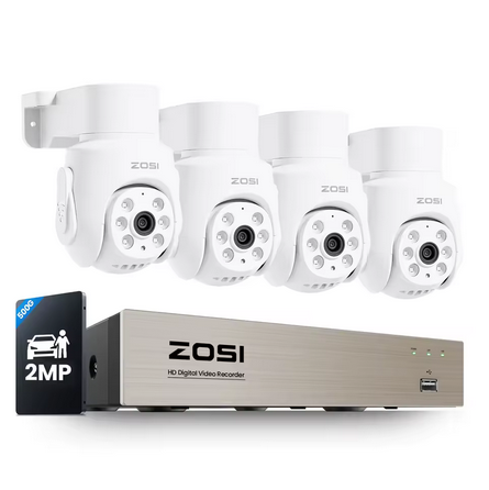 Capture todos os ângulos com visão de 360 °, garantindo vigilância domiciliar abrangente.Com um 8CH CCTV DVR, armazene e revise imagens de várias câmeras simultaneamente.A tecnologia H.265 + compression minimiza o espaço de armazenamento sem comprometer a qualidade do vídeo.Versatilidade interior/exterior: Projetado para uso interno e externo, este sistema se adapta a vários ambientes.Fácil instalação e configuração: O sistema de câmera de segurança ZOSI é fácil de usar, simplificando a instalação e configuração.Áudio Unidirecional