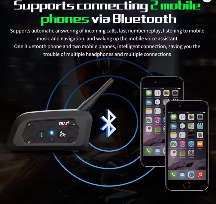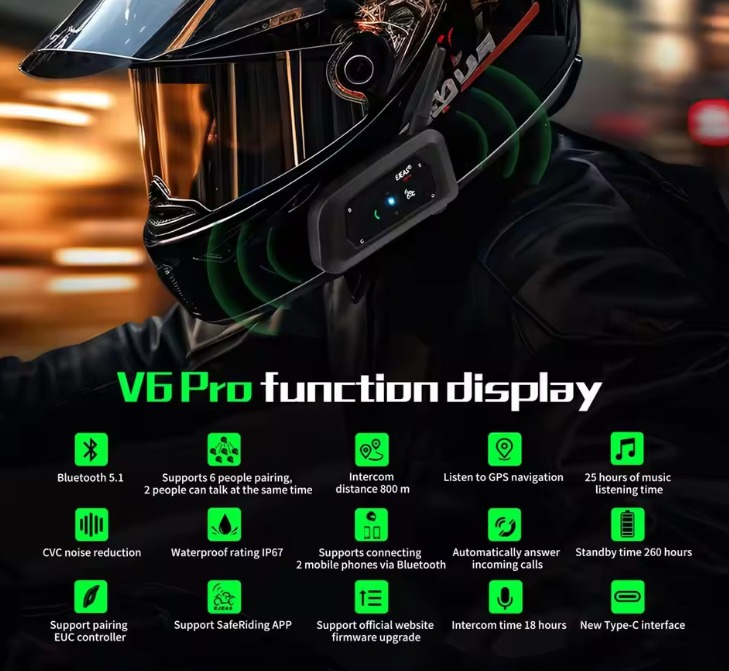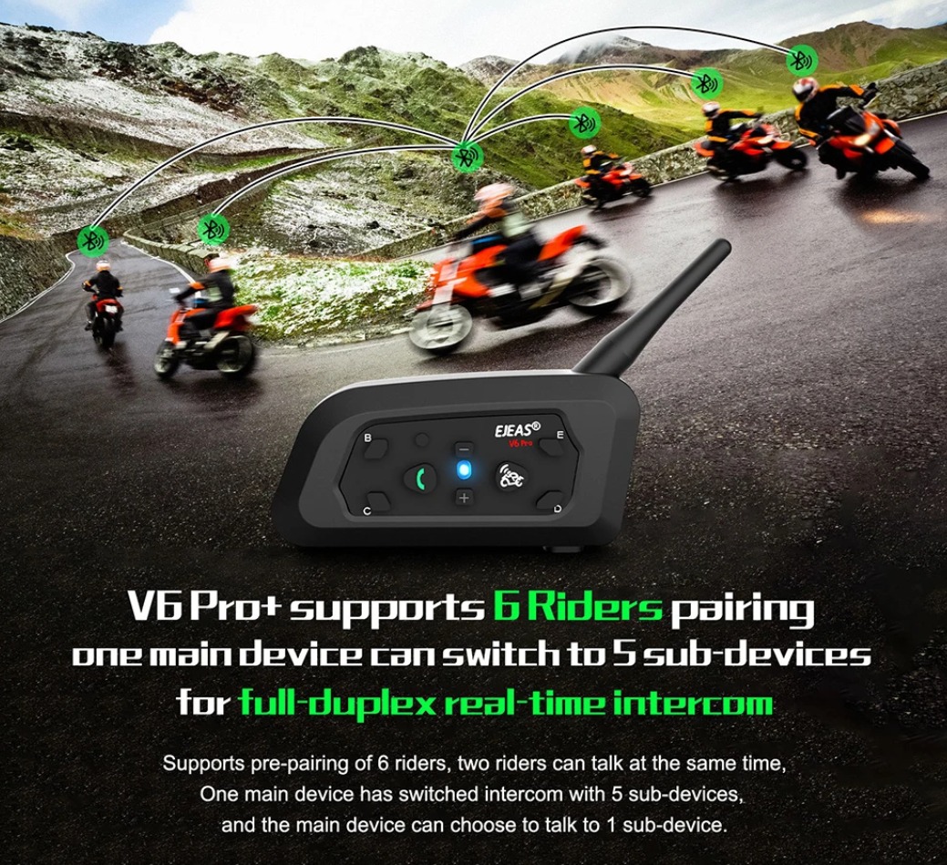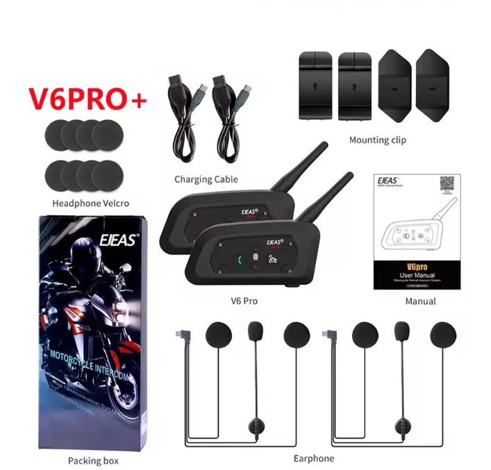 Intercomunicadores EJEAS V6 PRO+ para capacete mota kit 6x unidades comunicação até 800 metros