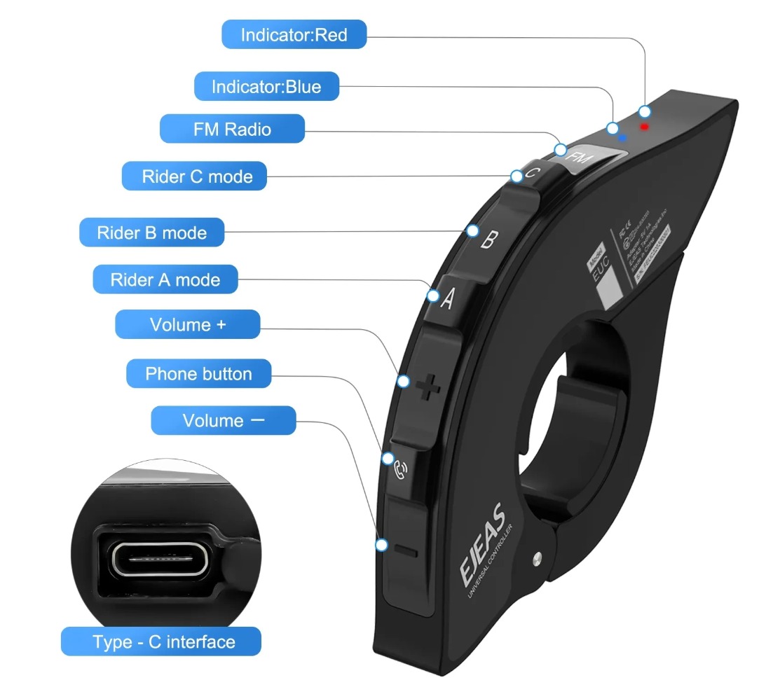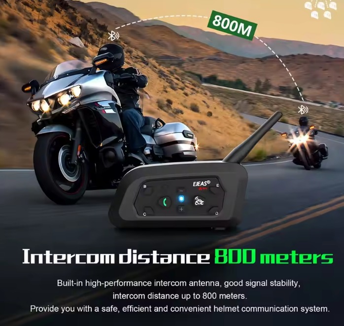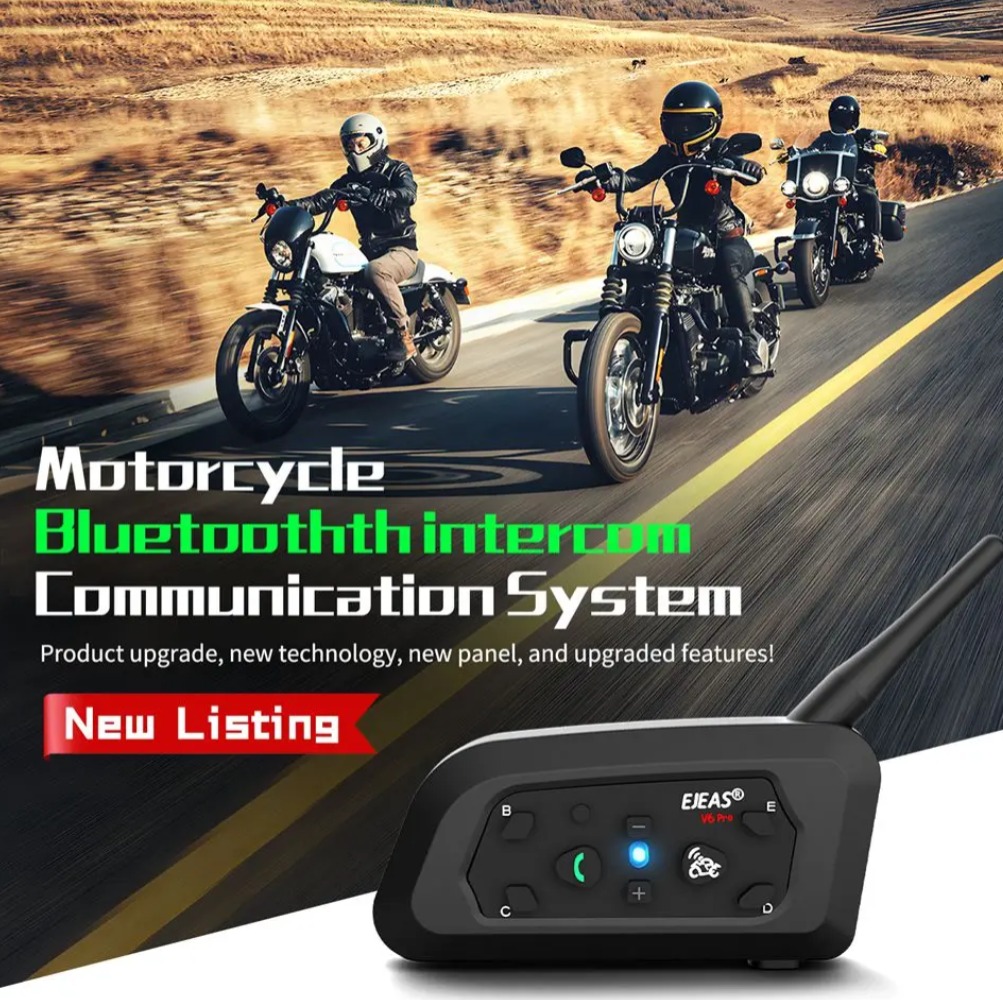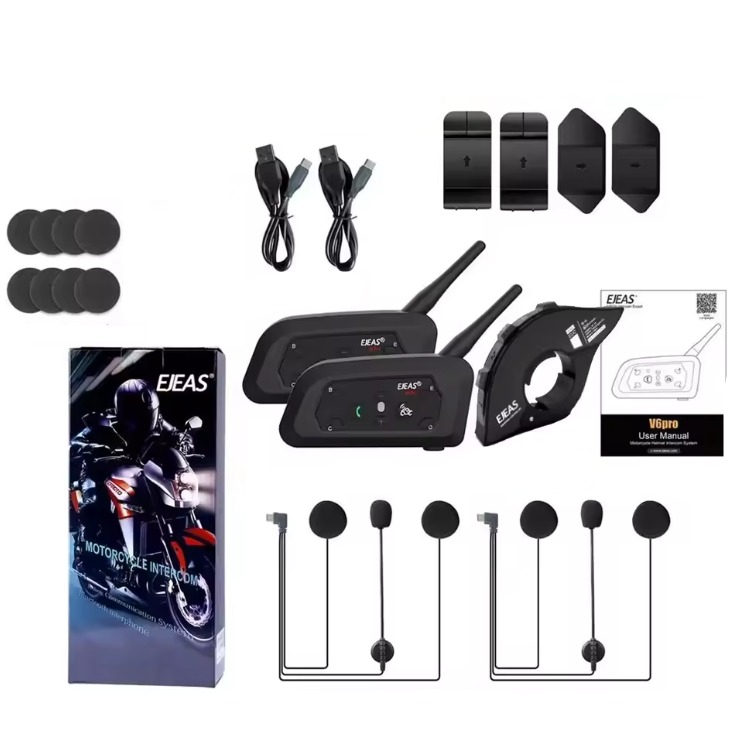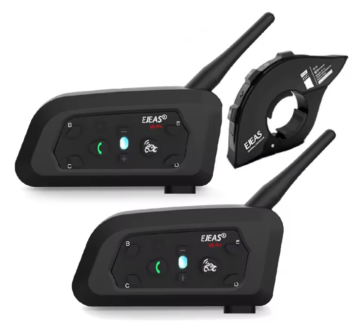 Kit 4x Intercomunicadores para capacete mota + 2x Controle remoto para guiador EJEAS V6 PRO+ comunicação até 800 metros
