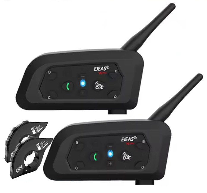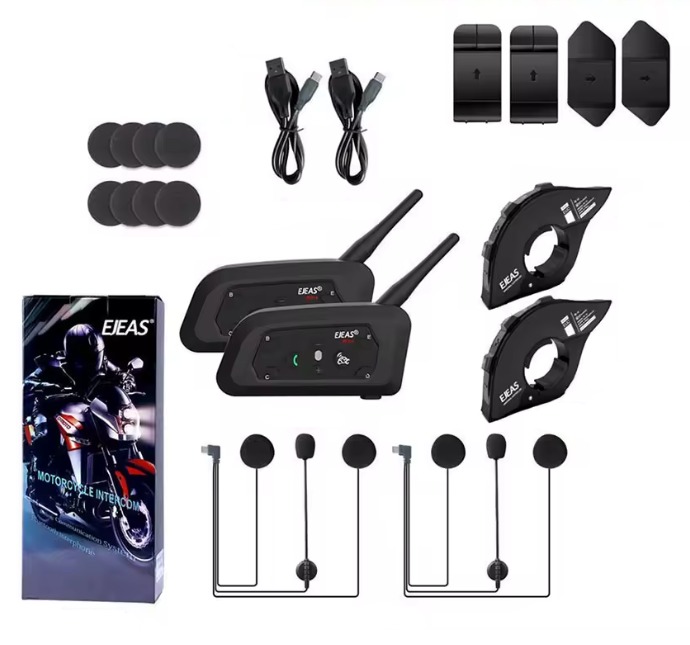 Kit 4x Intercomunicadores para capacete mota + 4x Controles remotos para guiador EJEAS V6 PRO+ comunicação até 800 metros