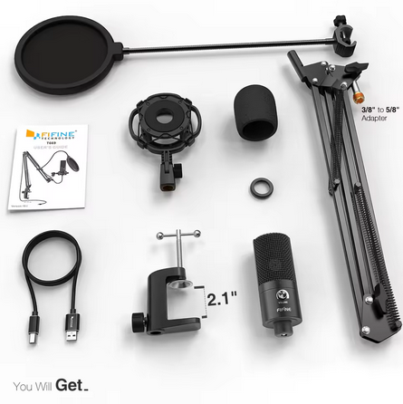 Kit Microfone com suporte USB FIFINE T669 Gaming streaming para PC/MAC