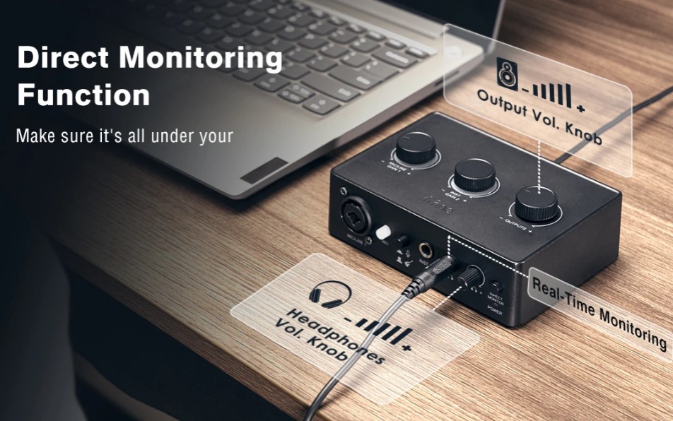 o controle do seu som com o monitor direto apresentado na interface de
