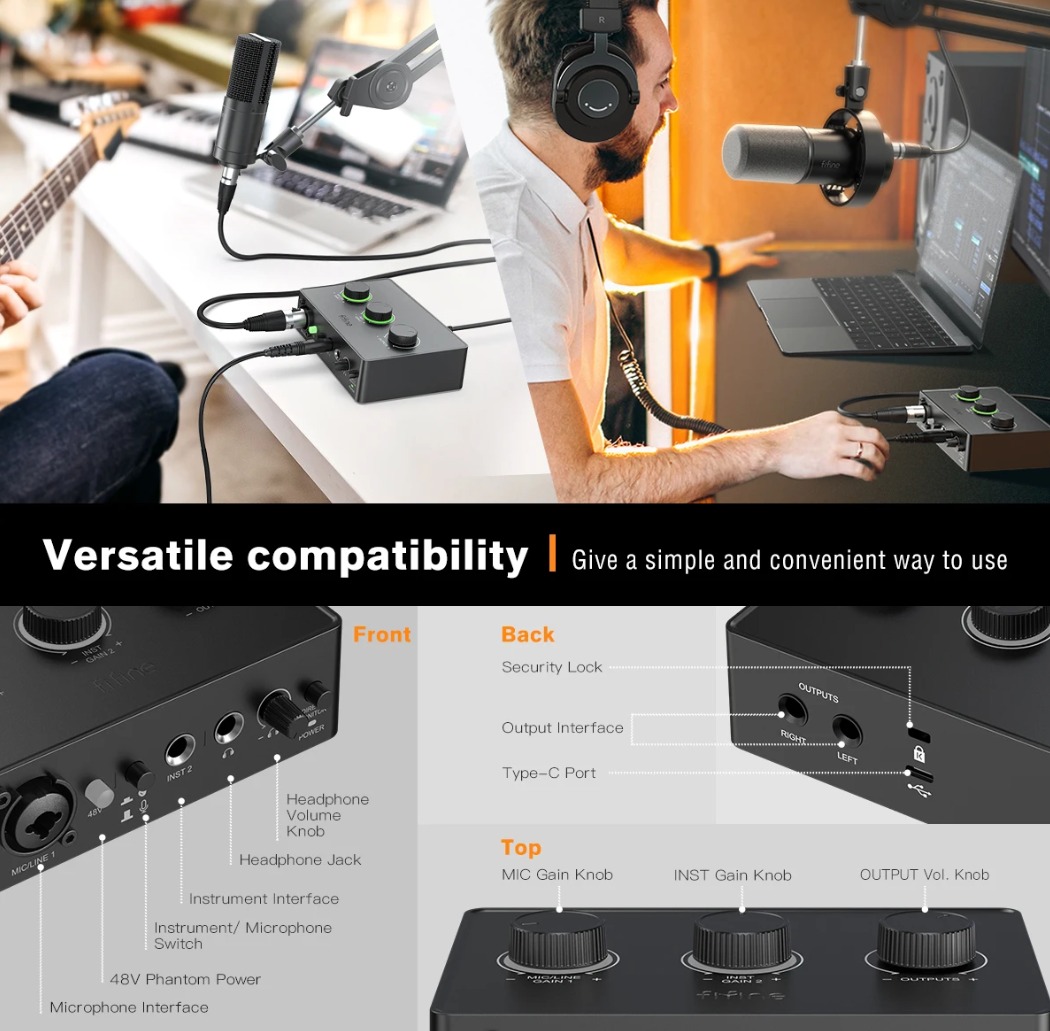 microfone XLR, a interface de áudio oferece reprodução de som original
