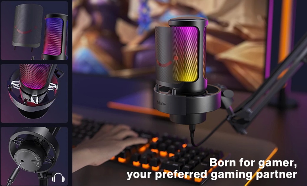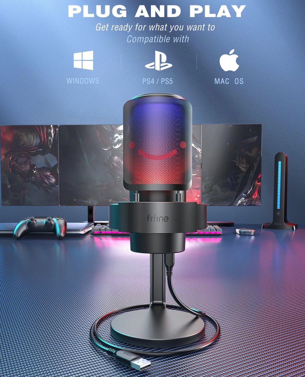 Microfone Gaming USB FIFINE A8 RGB streaming para PC/MAC/PS4/PS5