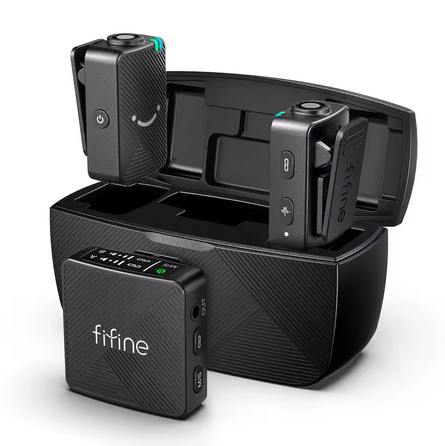 Microfone lapela duplo sem fio FIFINE M9 transmissão até 200metros autonomia bateria 7horas compatível com iPhone Android câmeras laptop