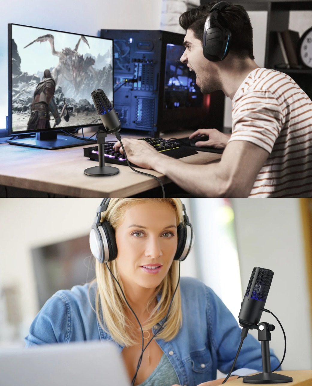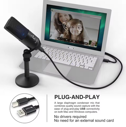 Clareza de nível de estúdio– O condensador de diafragma grande captura um som nítido e com qualidade de transmissão para Twitch, Zoom e vocais.