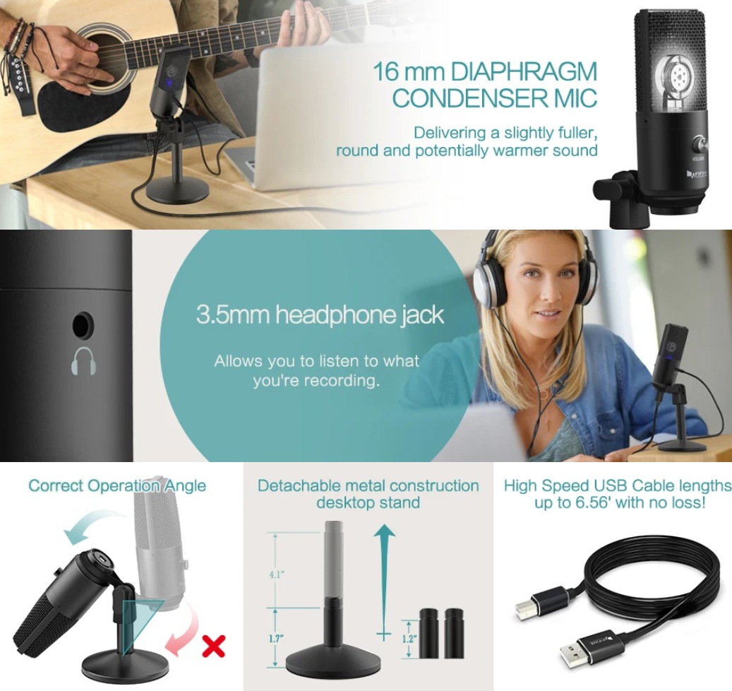 Monitoramento de latência zero– O conector de fone de ouvido de 3,5 mm integrado permite que você ouça áudio em tempo real sem demora para gravações perfeitas.