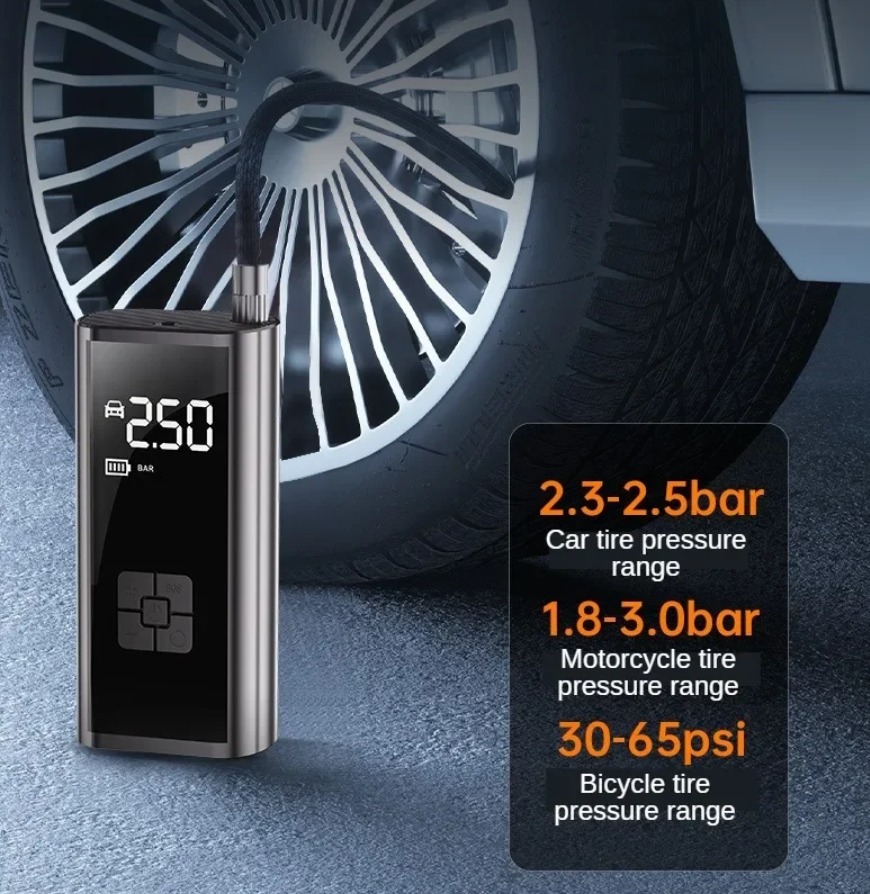 Portátil e compacto: O Mini Compressor de Ar é pequeno e leve, facilitando o transporte e o uso em qualquer lugar.