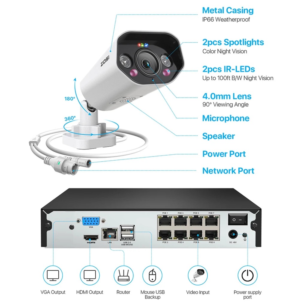 Quatro vezes a resolução de 1080P.Na resolução 4K.Grave tudo com detalhes mais nítidos com a alta contagem de pixels e seja capaz de ampliar digitalmente objetos distantes sem perder qualquer qualidade.Vídeo de super alta definição de 5 megapixels, 2.5 x melhor que 1080P Full HD.
