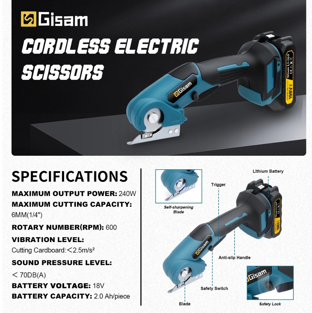 Tesoura elétrica alfaiate Gisam sem fio inclui 2 baterias e carregador