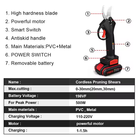 Simples e fácil de operar, também tem 8-10 vezes a eficiência dos podadores manuais tradicionais.